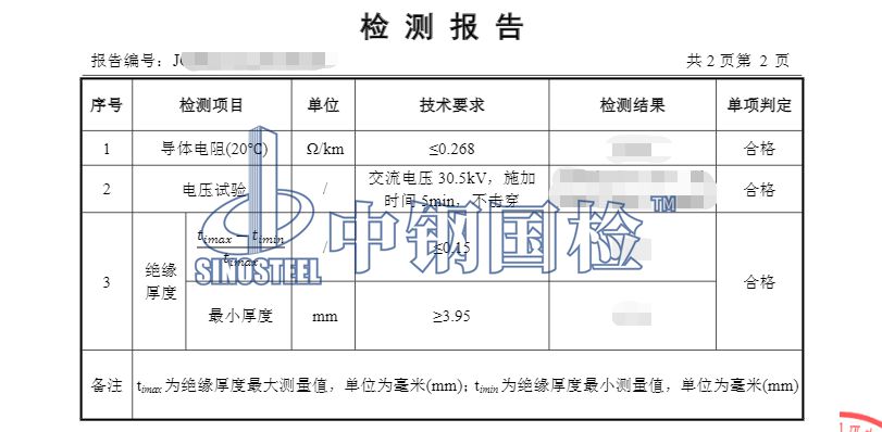 中鋼國(guó)檢擁有符合標(biāo)準(zhǔn)要求的專業(yè)實(shí)驗(yàn)室,可以保證檢測(cè)數(shù)據(jù)的準(zhǔn)確性。中鋼國(guó)檢的服務(wù)群體已經(jīng)覆蓋全國(guó),目前有十多家分公司和34個(gè)辦事處在全國(guó)各地分布,能做的及時(shí)響應(yīng),及時(shí)出具報(bào)告,并具有CMA/CNAS檢測(cè)資質(zhì),檢測(cè)報(bào)告全國(guó)認(rèn)可。下面是某單位委托中鋼國(guó)檢做的電力電纜檢測(cè),詳細(xì)內(nèi)容如下: