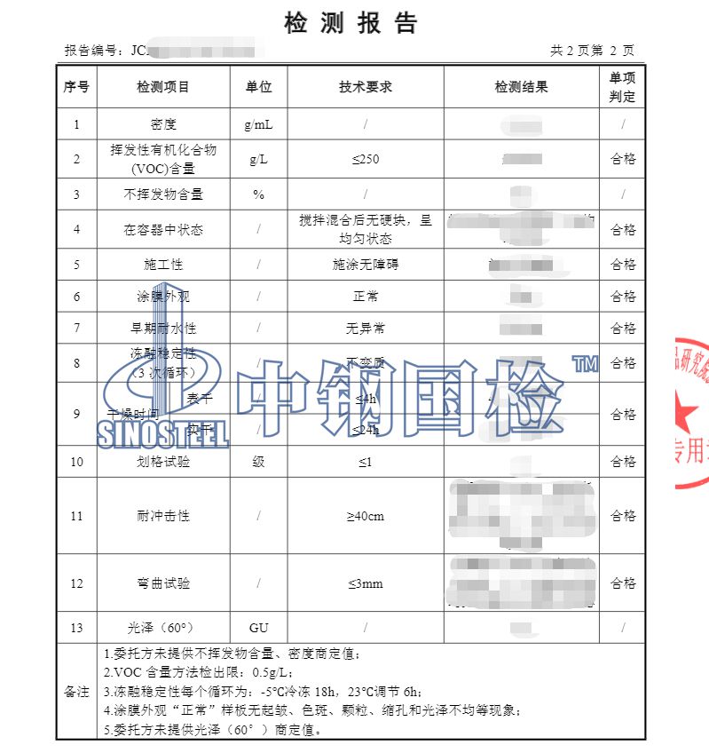 中鋼國檢擁有符合標準要求的專業實驗室,可以保證檢測數據的準確性。中鋼國檢的服務群體已經覆蓋全國,目前有十多家分公司和34個辦事處在全國各地分布,能做的及時響應,及時出具報告,并具有CMA/CNAS檢測資質,檢測報告全國認可。下面是某單位委托中鋼國檢做的鋼結構水性防腐涂料檢測,詳細內容如下: