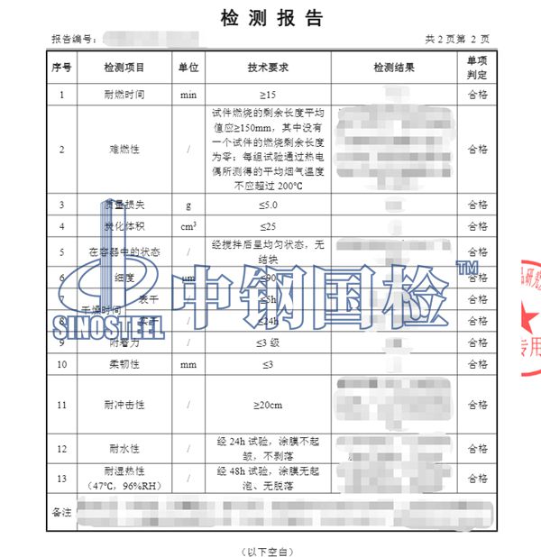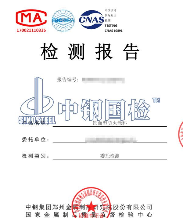 飾面型防火涂料檢測報告-中鋼國檢案例