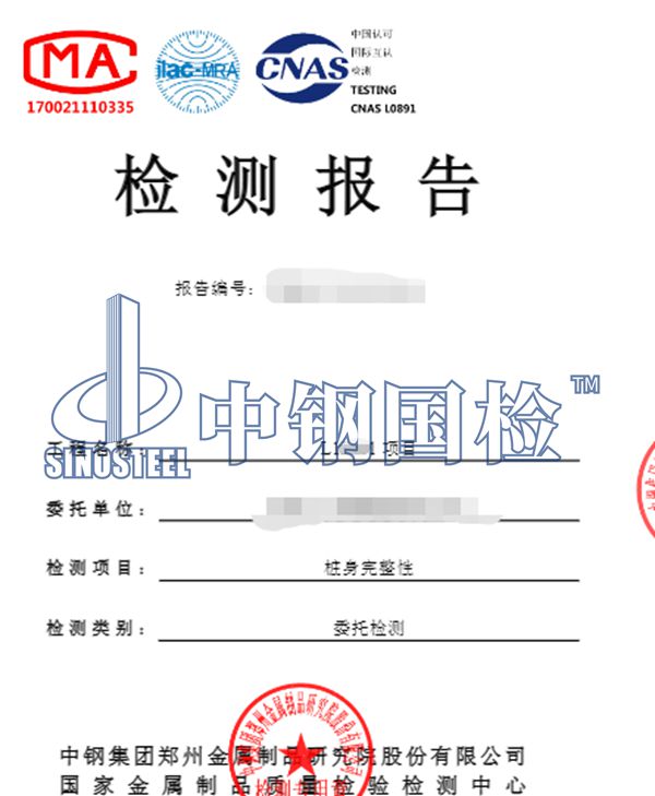 中鋼國檢樁基檢測案例中鋼國檢擁有符合標準要求的專業實驗室,可以保證檢測數據的準確性。中鋼國檢的服務群體已經覆蓋全國,目前有十多家分公司和34個辦事處在全國各地分布,能做的及時響應,及時出具報告,并具有CMA/CNAS檢測資質,檢測報告全國認可,目前已經進行檢測服務40多年,有著非常豐富的檢測經驗,下面是某單位委托中鋼國檢做的樁基檢測檢測,詳細內容如下:
