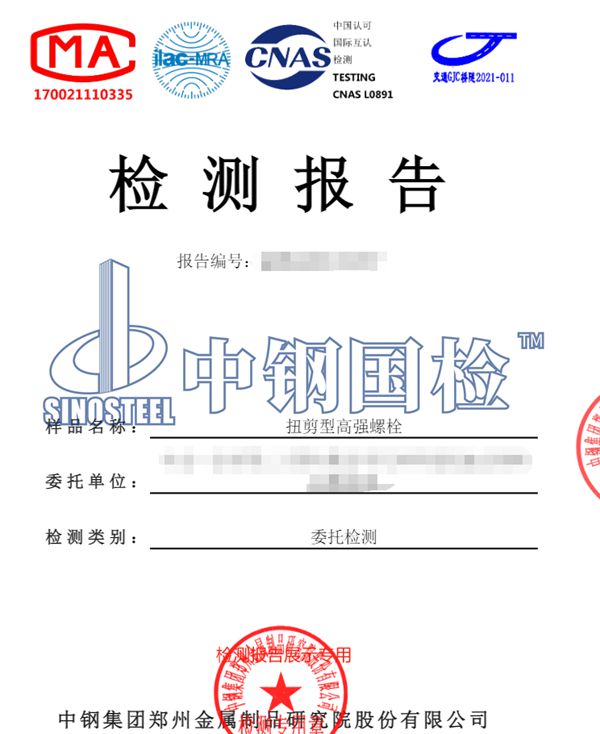 檢測報告樣品名稱 扭剪型高強螺栓