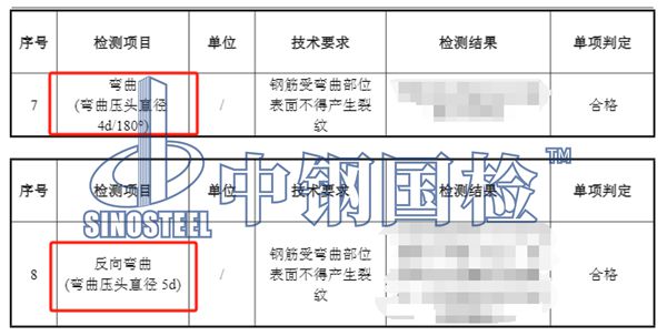 檢測項目:1.抗拉強度,2.重量偏差,3.下屈服強度,4.斷后伸長率,5.最大力總延伸率,6.實測抗拉強度與實測下屈服強度之比,7.彎曲,8.反向彎曲。