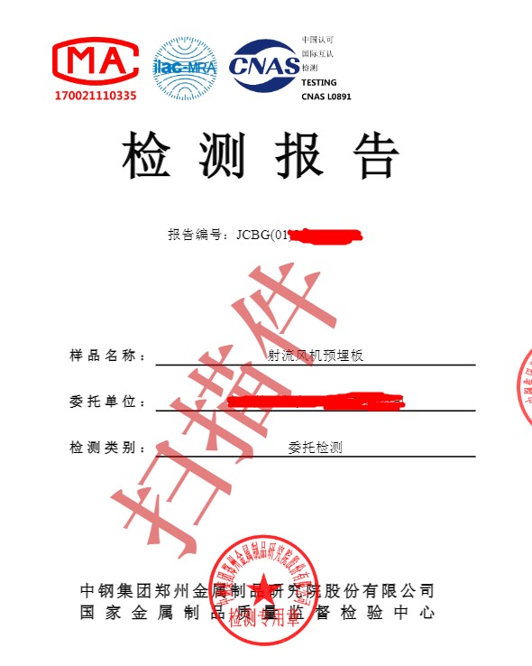 樣品名稱:射流風(fēng)機預(yù)埋板