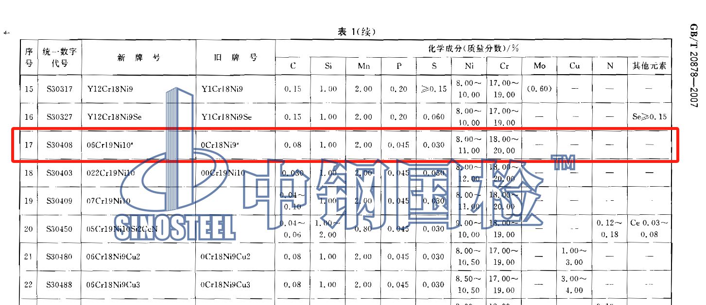 材質檢測即304不銹鋼中各元素的含量,根據標準GB/T 20878-2007的要求,
