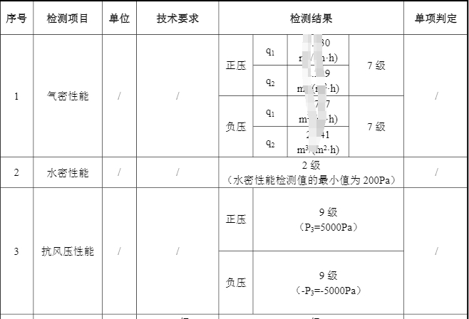 檢測項(xiàng)目 1.氣密性能,2.水密性能,3.抗風(fēng)壓性能