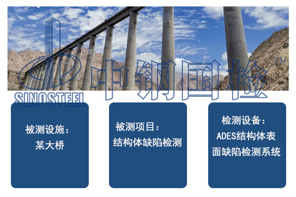 ADES結構體表面缺陷檢測系統用于非接觸遠距離檢測近2萬平米的橋梁混凝土表面裂縫等缺陷,某鐵路線第一高橋,橋墩高度60米,全橋長690.19米。對橋梁和橋墩混凝土表面進行大規模大尺寸快速檢測,后期對橋墩表面多張圖片進行精準矯正拼接。專業后處理軟件對拼接整圖進行裂縫缺陷抽取,軟件功能顯示裂縫寬度、裂縫長度等信息,同時輸出CAD展開圖和數據報告。