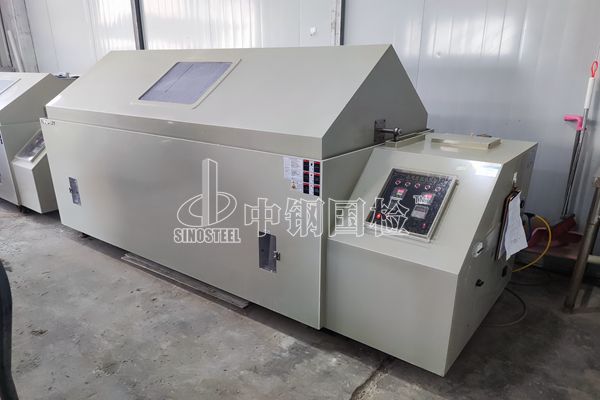 中性鹽霧試驗是在鹽霧箱內,將含有(5±0.5)%氯化鈉、pH值為6.5~7.2的鹽水通過噴霧裝置進行噴霧,讓鹽霧沉降到待測試驗件上,經過一定時間觀察其表面腐蝕狀態。試驗箱的溫度要求在(35±2)℃,濕度大于95%,降霧量為1~2mL/(h·cm2),噴嘴壓力為78.5~137.3kPa(0.8~1.4kgf/cm2)。