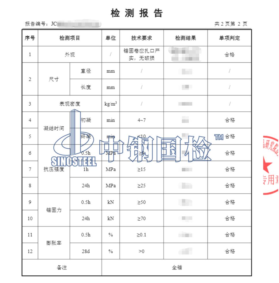 中鋼國檢作為專業的檢測機構,是質檢總局首批批準成立的第三方公正性技術檢驗機構,目前已經進行檢測服務40多年,有著非常豐富的檢測經驗,下面是某單位委托中鋼國檢做的錨固劑檢測,詳細內容如下: